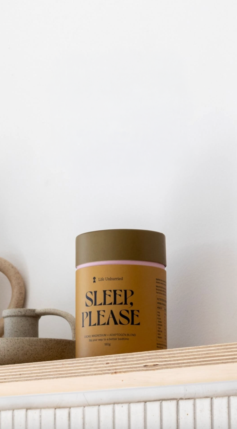 When Life Unhurried came to us, they weren’t just launching products they were extending a philosophy. SLEEP, PLEASE is their cacao, magnesium, and adaptogen blend, designed to support natural sleep and nightly ritual.